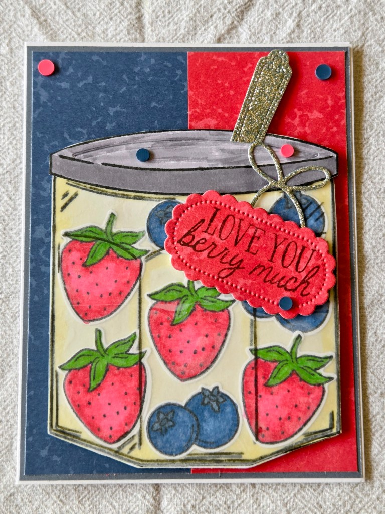 The return of spring also means fresh fruits in our area and the return of berries ready for canning. The theme of my card examples this month are berries.