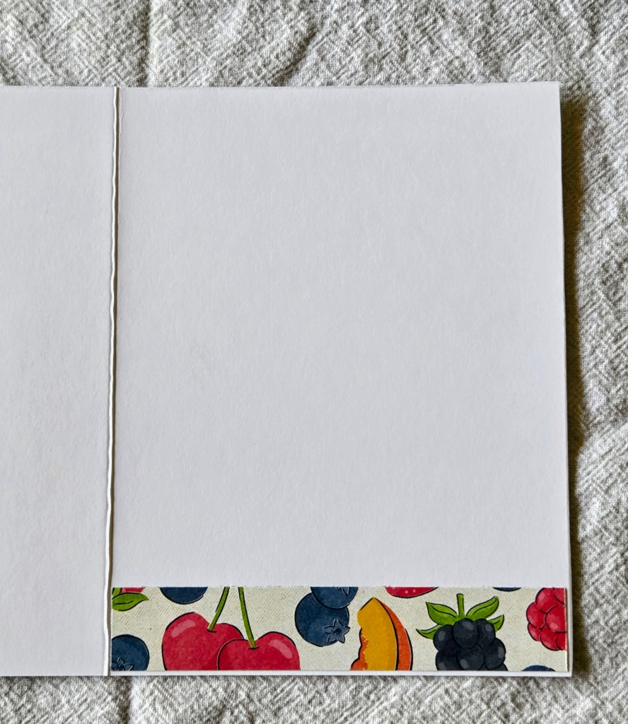 The first card is a “shape card” and not a rectangular shape. This particular card is shaped like a canning/jelly jar. So cute! The cards were made with cardstock, die cuts, and patterned paper from the Homemade Sweetness designer paper collection from Stampin’Up!. The second card has stamped and die cut strawberries and blueberries on white cardstock and then colored with alcohol markers. The jar was also stamped onto white cardstock, colored with alcohol markers and finally it has vellum on top that was stamped and then adhered to the card which gives the illusion that the berries are inside the jar! The last card is called a slimline card as it will fit into a regular mailing envelope. I will go over the technique used a little later in this post.